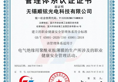 無錫順鉉光電職業(yè)健康安全管理體系認(rèn)證證書(S)